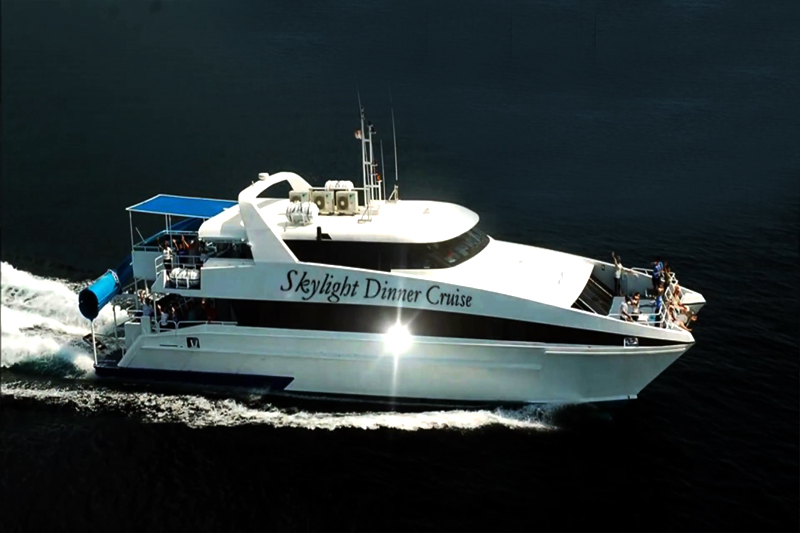 Skylight Dinner Cruise, An Evening Dinner Cruise Which Exclusively Designed With Indian Theme In 26 Meters Fast Catamaran With The Capacity Of Maximum 120 Passengers. Come And Enjoy The Night Breeze Of Benoa Strait With Selections Of Latest Bollywood Song Played By Our On Board Live DJ. Don’t Miss NON STOP On Board Entertainment Such As Bollywood Dance, Cabaret Dance, Drag Queen, Live Acoustic And Feel Free To Interact With Our Charming Belly Dancer. Mouth-Watering Full Buffet Authentic Indian Food With Wide Selections Of Non Vegetarian And Vegetarian Food Will Be Served During The Cruise. JAIN Food Is Available Upon Request.