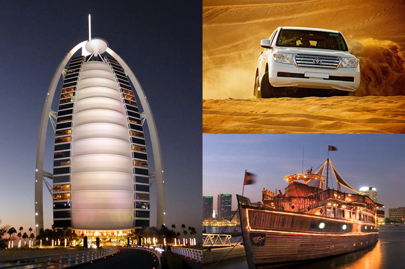 The Tour Begins With A Panoramic Shoot Of Burj Al Arab Hotel, The World Tallest Hotel Set On A Manmade Island. There After Visit Some Of The City's Most Prominent Landmarks Like The Famous Jumeirah Mosque, World Trade Centre, We Pass By The Impressive Palaces Of The Ruling Family Of Dubai And Visit The Dubai Museum-Housed In The 18th Century Al Fahidi Fort Which Is Faithfully Restored To Its Former Glory. Experience The Ancient Arabia Meticulously Recreated In The Bastakiya-The Oldest Part Of The City. We Then Enjoy A Ride Across Famed Dubai Creek In A Local Water Taxi Called “ Abra “ To Visit The Aromatic Spice 'Souq'- A Treasure Trove Of Spices, And The Glittering Gold Souq Where The Best In Gold Jewellery Is Available At Unbelievable Prices.