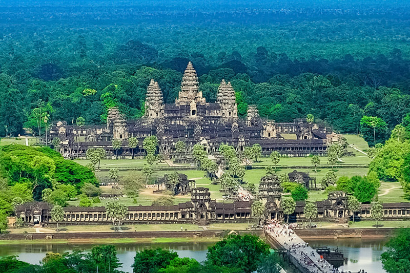 Angkor Wat Is The Largest Temple In The World, With A Volume Of Stone Equaling That Of The Cheops Pyramid In Egypt. It Is Unlike All Other Khmer Temples In That It Faces West, And It Is Inspired By 12th Century Hinduism. Conceived By Suryavarman Ii, Angkor Wat Took Several Decades To Build. Intricate Base Relief Surround Angkor Wat On Four Sides. Each Tells A Sty. The Way The Light Glows On The Ancient Stones Makes Sunrise And Sunset The Best Time To Wander Through Angkor Wat's 2 Square Kilometers, Climb Its Tower.